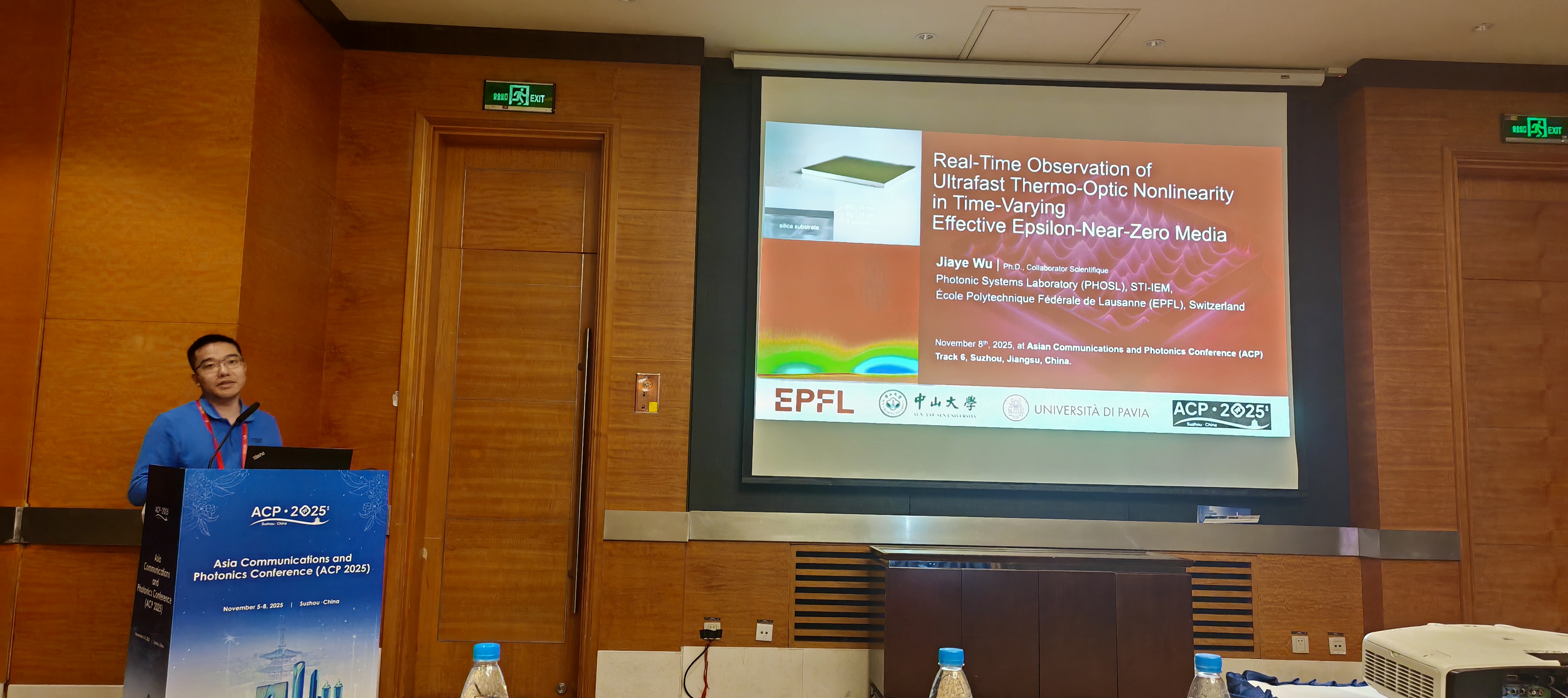 Oral presentation entitled Real-Time Observation of Ultrafast Thermo-Optic Nonlinearity in Time-Varying Effective Epsilon-Near-Zero Media at Asian Communications and Photonics Conference (IPC) 2025, Suzhou, China. (Wu*† et al., 2025)